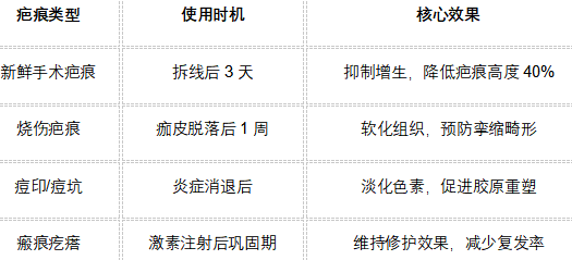 使用周期:建议每日贴敷12-24小时,连续使用3-6个月(疤痕代谢周期为28-90天)。
